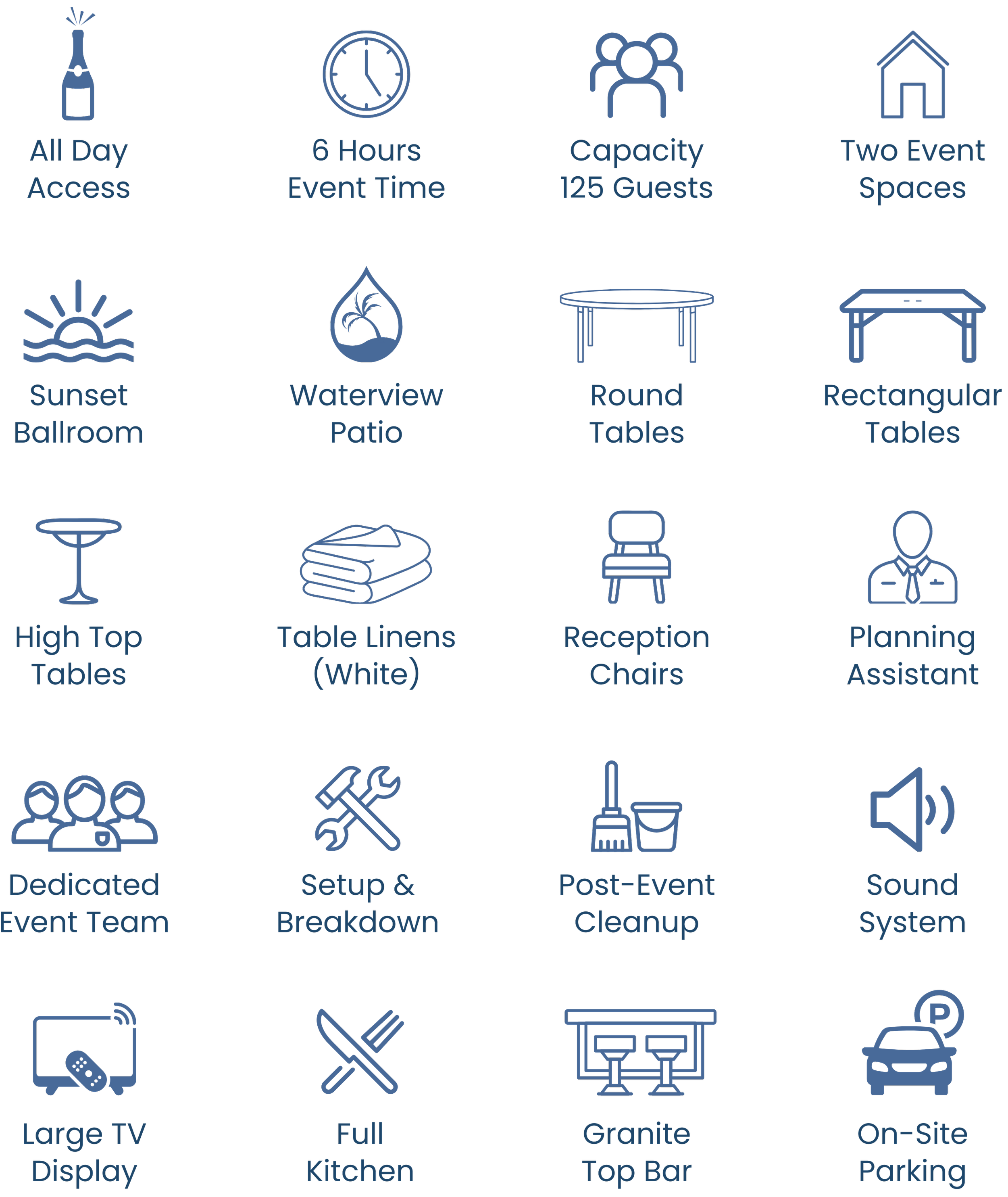 Sunset Point is a Wedding Venue and Event Space located in Stuart Florida - designed for couples who want a waterfront celebration without the waterfront price tag. From charming coastal aesthetics and all-inclusive packages, to in-house planning support and day of coordination, discover everything this beautiful location has to offer.